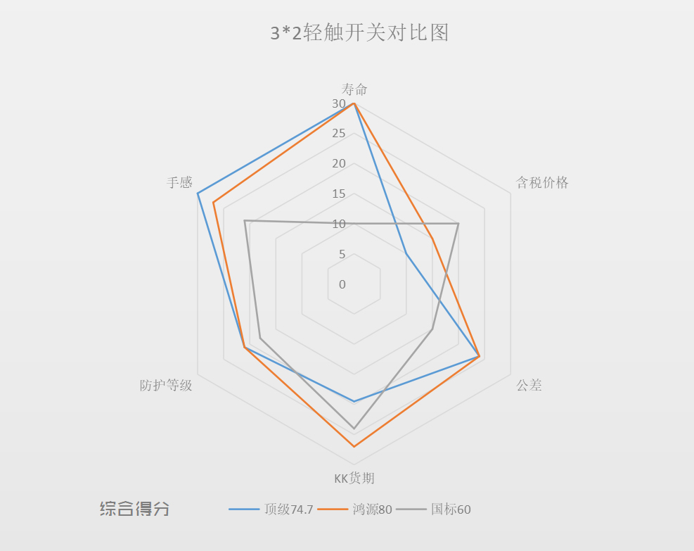 自從輕觸開關面世以來,使用者對它的要求就越來越高。從最初的家用電器大開關的3000-5000次壽命,直到后面的30000-50000次壽命,再到現在主流手機的行業要求100000-500000次壽命,數據顯示20年來輕觸開關的壽命增長了100倍。壽命的增長可能是眾多參數中最直觀、最基本的要求;手感、力度、行程則成為了既壽命之后幾大重要參數;再到現在的防塵防水、防松香、耐高溫、防潮、抗氧化、抗跌落等等需求。
