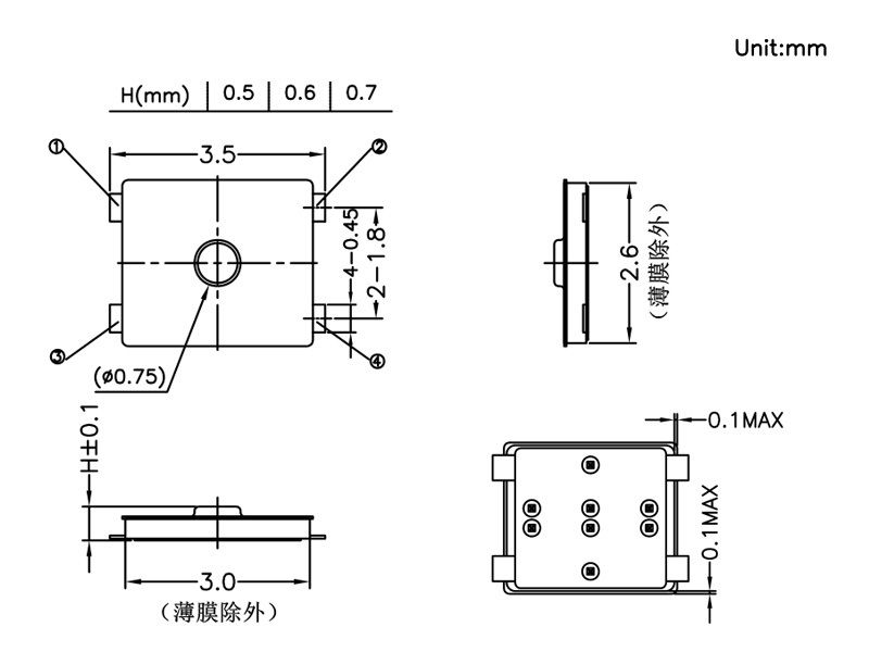4、產品外形尺寸3.0mm×2.6mmx0.6mm,符合業界超薄超小型特色,同時具有laser特點 。