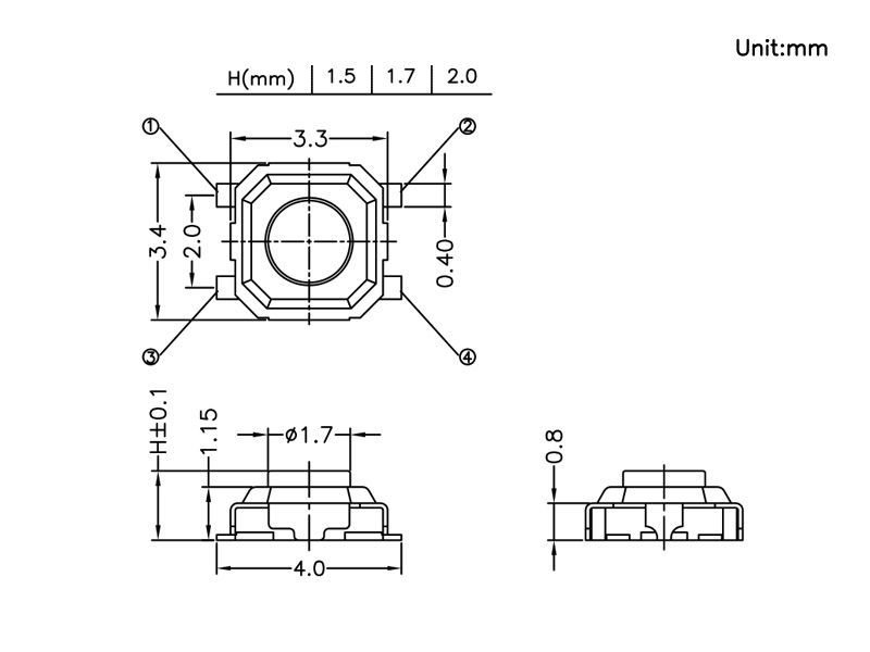 4、產(chan)品外形尺寸3.0mm×3.0mmx1.5mm,符合業界超薄超小(xiao)型特(te)色 。
