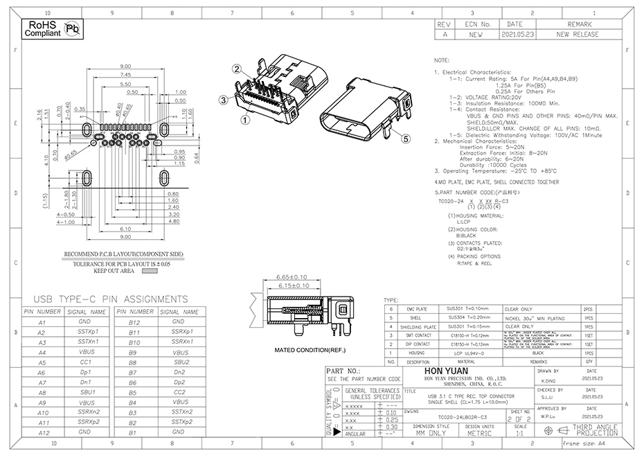 關鍵詞:TYPE-C連(lian)接器,TC020-24LB02R-C3