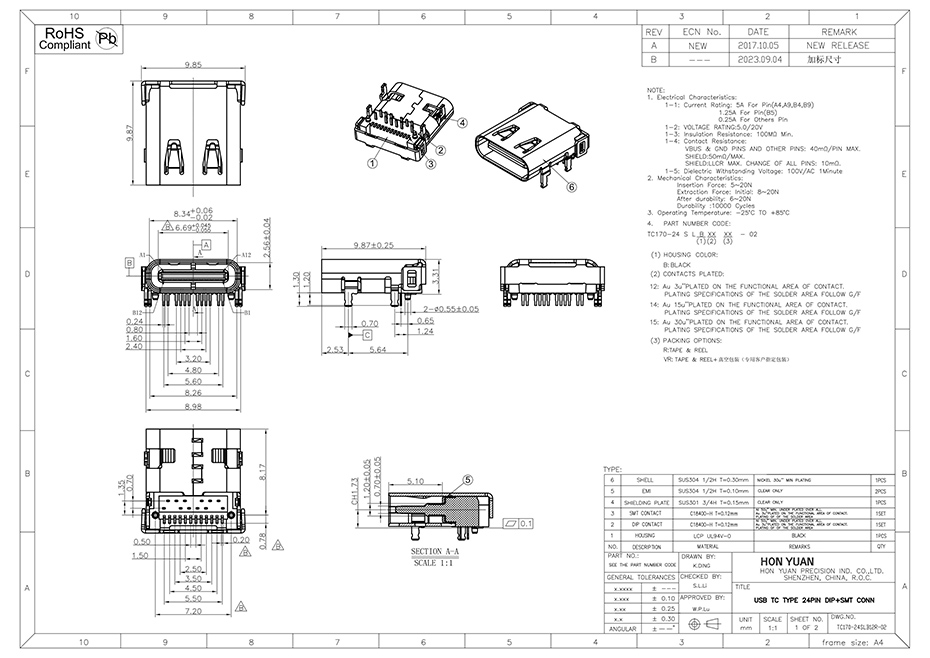 關(guan)鍵詞:TYPE-C連(lian)接器,TC170-24SLB12R-02